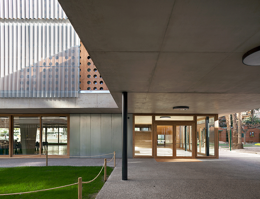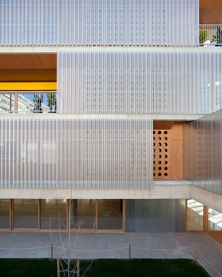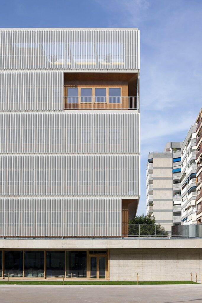 Un diseño de la envolvente que no solo responde a criterios estéticos, sino que también cumple con los requerimientos técnicos del proyecto, como la protección solar, el aislamiento térmico y la durabilidad, garantizando confort y eficiencia a largo plazo en un entorno educativo.