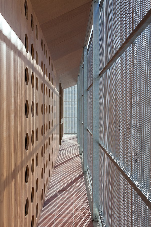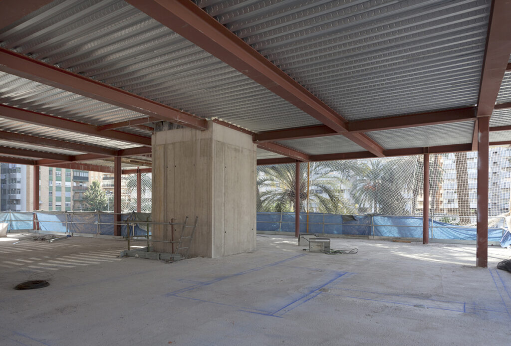Además de la envolvente, los perfiles metálicos también se utilizaron como perfil de soporte en los forjados y encofrados. Se utilizaron el perfil Eurocol 60 de encofrado perdido, en color Blanco 880 como perfil soporte del forjado de la pasarela que une el nuevo edificio con el volumen ya existente, y el perfil Eurocol 60 como perfil de forjado colaborante en acero galvanizado para los forjados del nuevo edificio, aportando resistencia, durabilidad y eficiencia.
