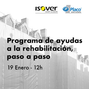 No te pierdas el próximo 19 de Enero a las 12h el evento organizado por Saint-Gobain ISOVER y Placo®: "Programa de ayudas a la rehabilitación, paso a paso". Una jornada práctica para conocer todo el proceso de solicitud de ayudas y subvenciones a la rehabilitación edificatoria.