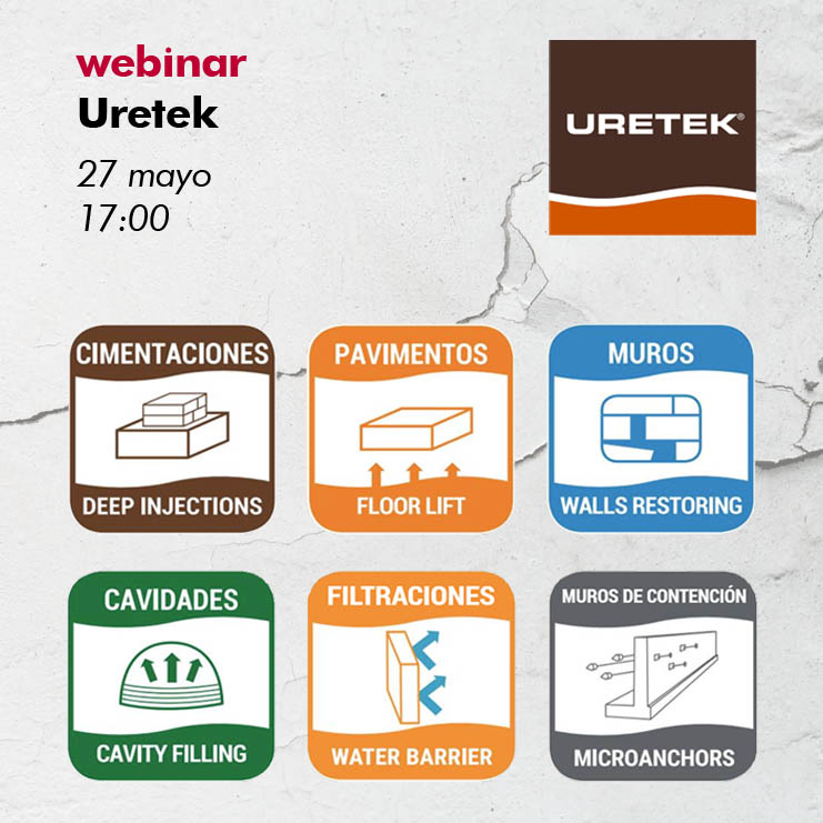 El próximo jueves 27 de mayo a las 17:00h, Uretek organiza una jornada técnica online tipo webinar titulada “Restablecimiento de estructuras con inyecciones de resina. Múltiples soluciones sin interferir en la vida y actividad del edificio” explicando sus distintas tecnologías y casos de éxito. ¡Apúntate ya!