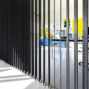 Création Baumann, la empresa suiza dedicada a la fabricación y diseño de textiles y paneles de alta calidad para interiores, lanza nuevas lamas verticales con una absorción de valor alfa de 0,90; la cual aporta a espacios una gran calidad acustica.