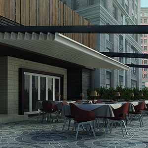 La pérgola tensada ATIKA de LLAZA con tejido máster opaco de RECASENS: la unión ideal para las terrazas horeca