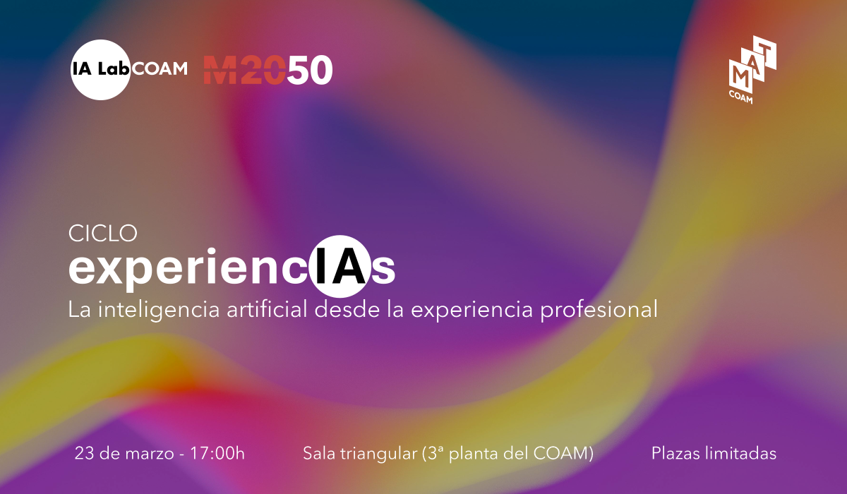 Desde el enfoque más técnico, hasta el más estratégico o creativo, cada sesión de experiencIAs será una oportunidad para descubrir, aprender y debatir sobre cómo la IA transforma nuestra profesión desde dentro: “IA en primera persona: arquitectos que ya la usan, arquitectos que la descubren»