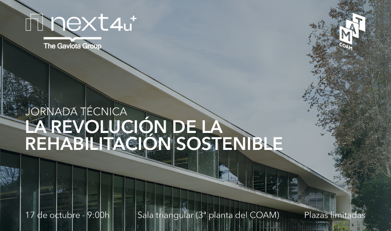 Os invitamos a participar el jueves 17 de octubre, a las 9h00, en esta jornada técnica presencial, organizada por The Gaviota Group, donde se presentará el nuevo programa Next4u junto a un destacado grupo de arquitectos y técnicos referentes del sector.