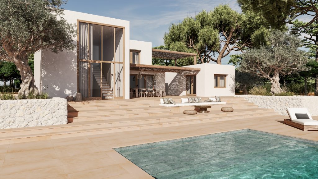 Piscina y pavimento con nuevas propuestas cromáticas