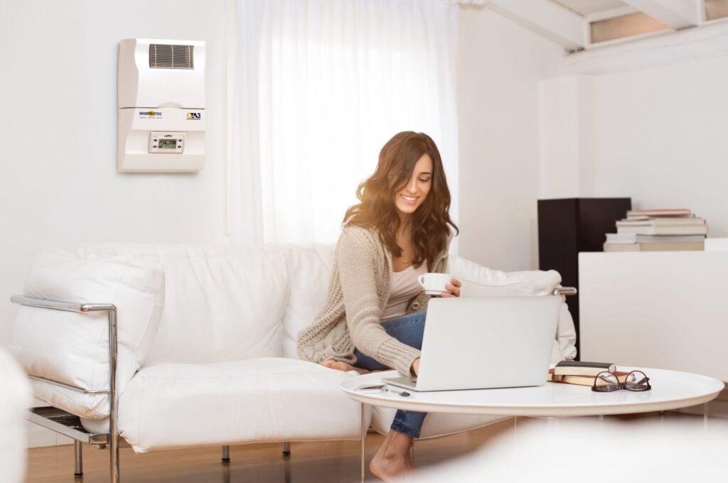 Una Central de Tratamiento de aire de Murprotec, es un sistema de ventilación mecánica que elimina de forma definitiva los problemas de humedades por condensación de una vivienda. El funcionamiento de este dispositivo es similar a la respiración pulmonar humana. Este “pulmón” artificial hace que la edificación respire. Además, este sistema no sólo renueva el aire liberando el ambiente de los excesos de humedad, sino que ayuda a conservar la temperatura del hogar, con el consecuente ahorro energético y económico que esto supone y, a su vez, purifica el aire de tal manera que beneficia enormemente a personas alérgicas.