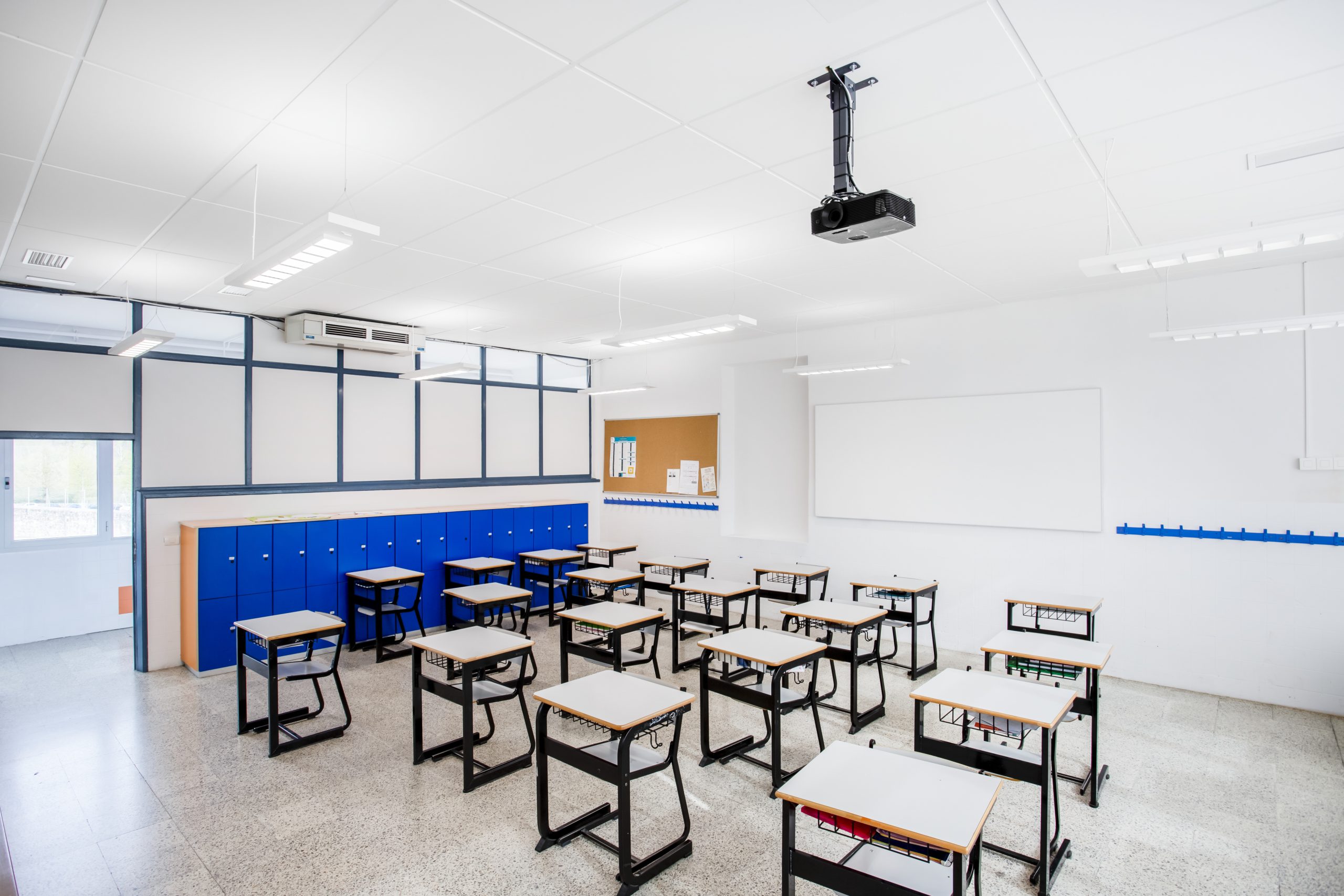 Ecophon Extra Bass, paneles que aportan absorción extra a bajas frecuencias, mejorando la atención y concentración de los alumnos.