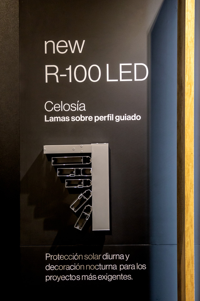 Destaca las celosías R-100 LED, capaces de absorber la radiación solar antes de que llegue a la superficie de la edificación, de manera que este calor absorbido o reflejado, se disipa a la atmósfera con el ahorro energético que esto representa en épocas cálidas del año.