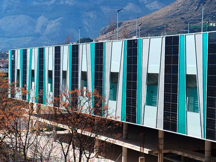 El centro se caracteriza por su imponente fachada, que cubre más de 500 m² con policarbonato Seplux 20, en tonalidades verdes y opal. Este material translúcido permite la entrada de luz natural, creando un ambiente interior luminoso y sostenible. Además, el uso de estos colores refleja la identidad regional de Andalucía, integrando al edificio en su contexto cultural y geográfico. El trabajo de Pal Plastic, con Non Arquitectura e instalado por Estrucmar, ha dado lugar a este proyecto.