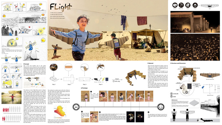“FLight propone un dispositivo muy sencillo de aplicación generalizada, para elevar y llevar la diversión, la alegría y el juego a la vida de los niños, en particular a los que crecen en situaciones de posguerra. Apreciamos mucho este proyecto humilde y sencillo, pero también muy práctico y divertido”, comentó John Ronan, arquitecto estadounidense y director fundador de John Ronan Architects en Chicago y presidente del jurado