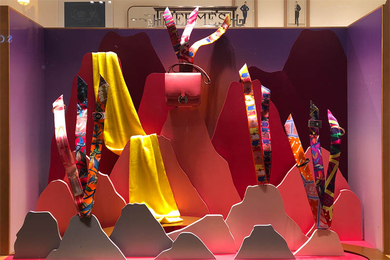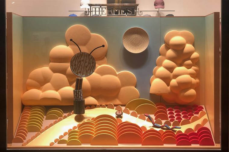 Kiki Van Eijk explica su concepto creativo como un viaje a través de los sueños, nos plantea la idea de un camino dorado que va mostrando diferentes paisajes con cambios inesperados y personajes muy peculiares. De este modo, cada escaparate está unido con el siguiente a través de distintas historias. Cada artículo de la firma francesa cobra vida y representa un papel dentro del Universo Hermès. Ratones, conejos, pájaros, mariposas, orugas, todos ellos creados partiendo de carteras, zapatos, bolsos, pañuelos, perfumes, joyería y cerámica de Hermès, una original fusión que hace de los escaparates una obra de arte.