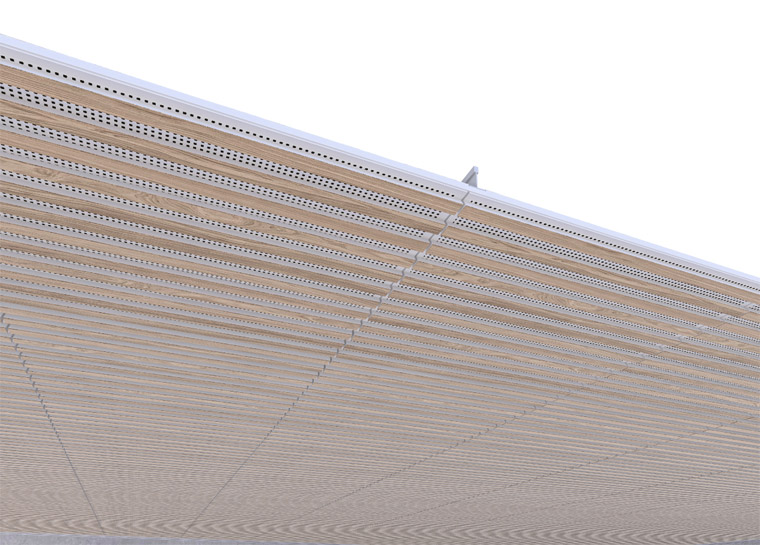 Inspirado en los majestuosos bosques de Dinamarca, ROLD12 embellece y personaliza el espacio con un estilo natural. Se han creado nuevas posibilidades dimensionales para diseñar techos acústicos combinando los beneficios funcionales de un techo registrable con una nueva forma de concebir el yeso.