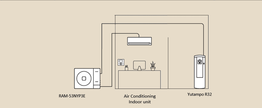 Todo ello con una sola unidad exterior con refrigerante R32, disponible en tres niveles de potencia (5,3 kW, 7 kW, 8,5 kW) y combinable con de una hasta cuatro unidades interiores de tipo mural, cassette, conducto o consola, más un depósito de A.C.S. (de 190 ó 270 litros) con medidas reducidas para su instalación en armario de cocina (versión 190 l). Además es compatible con paneles solares fotovoltaicos mediante Smart Grid.