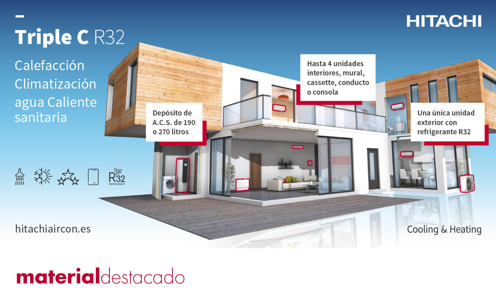 En definitiva, Triple C ó Triple Confort de Hitachi es la opción perfecta si buscas la solución integrada con mejor relación coste/eficiencia para tus instalaciones de calefacción, aire acondicionado y A.C.S. en viviendas.