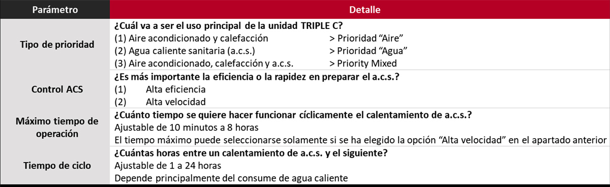 El sistema es configurable para garantizar el máximo confort de los usuarios, cualquiera que sea el patrón de uso del sistema, y para ello el control del depósito cuenta con múltiples parámetros que se ajustan durante la puesta en marcha del sistema.