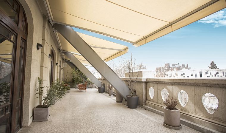 El tejido Recsystem® es perfecto para todo tipo de toldos aplicados en terrazas y espacios al aire libre que requieran de una cobertura fiable y duradera. Su resistencia lo convierte en una excelente elección tanto para aplicaciones residenciales como comerciales o Contract.