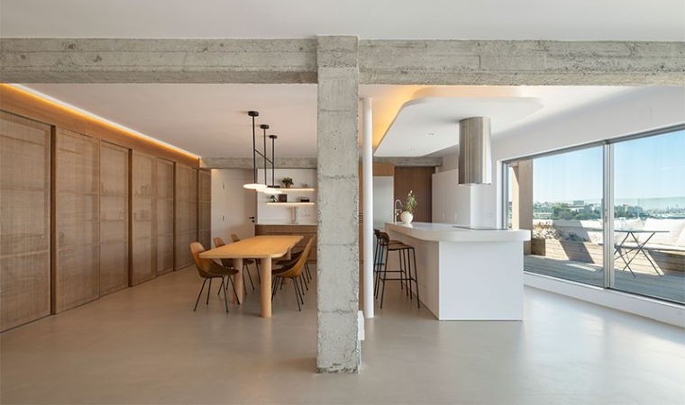 Las soluciones de Saint-Gobain Weber, líder mundial en la fabricación de morteros industriales para la edificación, han sido elegidas para la reforma del suelo de este ático, ubicado en el municipio de Oleiros (La Coruña), que destaca por sus vistas a la bahía coruñesa y por la conexión creada entre el espacio interior y exterior. Este ático de 145 m2 maximiza la conexión de la terraza con el interior mediante amplios ventanales con perfilería mínima. Así, con el fin de crear en el huésped una sensación de frescura visual, en el interior se ha despejado todo el frente de la fachada y en el exterior se han introducido elementos de vegetación.