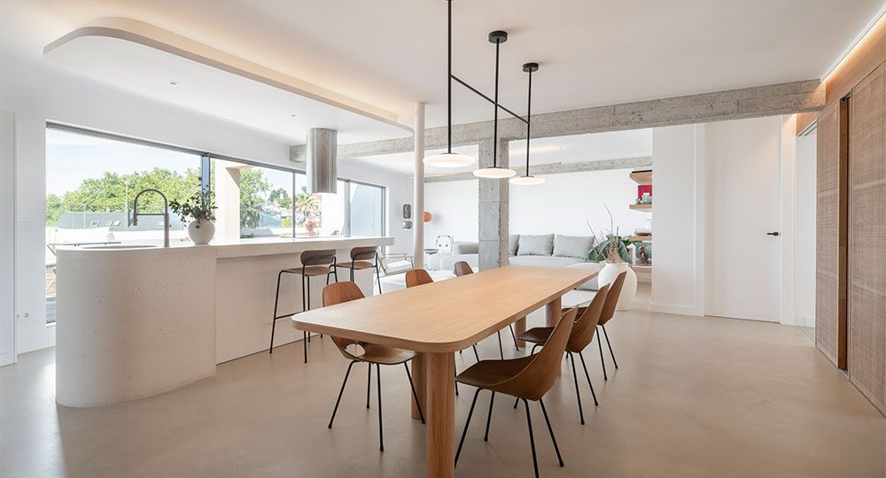 Uno de los elementos que destaca en esta reforma es el suelo, que ha sido realizado con soluciones en base poliuretano, para proporcionar un acabado continuo en toda la vivienda. En concreto, el pavimento se revistió con el autonivelante weberfloor for para obtener una alta planimetría, a la vez que una alta resistencia al impacto. Gracias a esta solución, se ha conseguido un acabado muy fino que posteriormente ha sido revestido, por un lado, con el barniz de poliuretano weberfloor aqua protect 2C, apto para soportes con humedad residual, y por otro, con el barniz de poliuretano weberfloor DECOPUR PROTECT 1C, que permite un acabado de alta calidad estética con un color de alta estabilidad, ofreciendo un acabado mate.