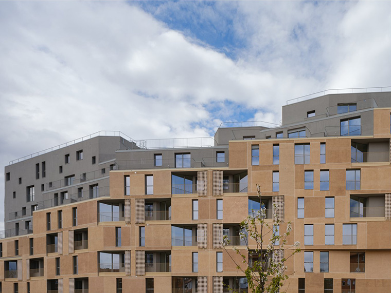 Twpeaks es un edificio de vivienda social en el Ecobarrio Vallecas de Madrid, que actúa como pieza de transición entre tres barrios de carácter y volumetrías muy distintas. Para responder al entorno y reducir su escala percibida, el edificio propone dos fachadas: una inferior modulada que da escala a la calle, cálida y cercana, y otra superior, retranqueada, con una disposición de huecos más libre, dónde la vida aflora en las terrazas libre de ataduras compositivas.