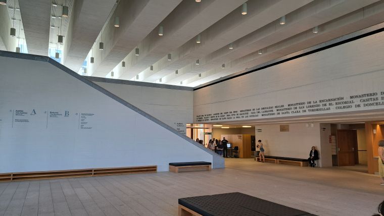 El resultado es un espacio que combina funcionalidad y estética, albergando exposiciones en un edificio singular situado junto al Palacio Real de Madrid y la catedral de la Almudena.