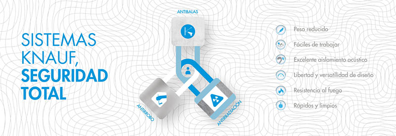 La versatilidad de los sistemas de seguridad Knauf permite su adaptación a cualquier tipo de proyecto y ofrece soluciones que garantizan la seguridad total de las personas y de los edificios, cumpliendo con las normas más estrictas.