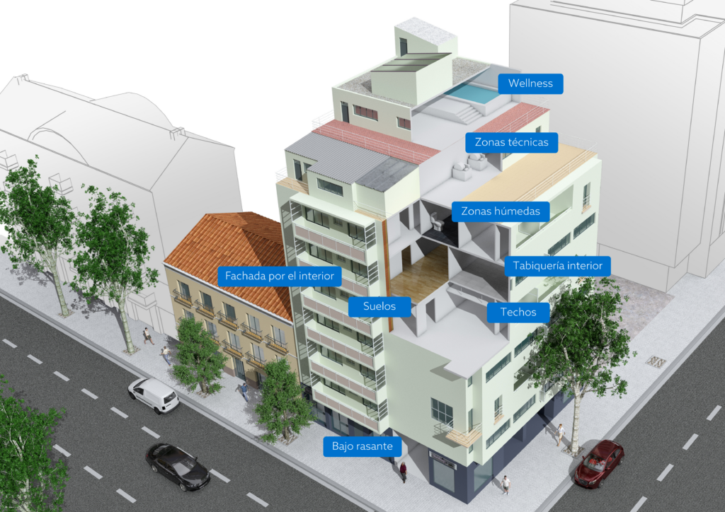Este catálogo está diseñado para arquitectos, ingenieros, constructores y rehabilitadores que buscan soluciones eficaces, sostenibles y de alto rendimiento para transformar espacios interiores. Desde pequeñas reformas hasta grandes proyectos de rehabilitación, este catálogo ofrece soluciones integrales para cada problemática constructiva. El catálogo ya está disponible para su consulta en formato digital: