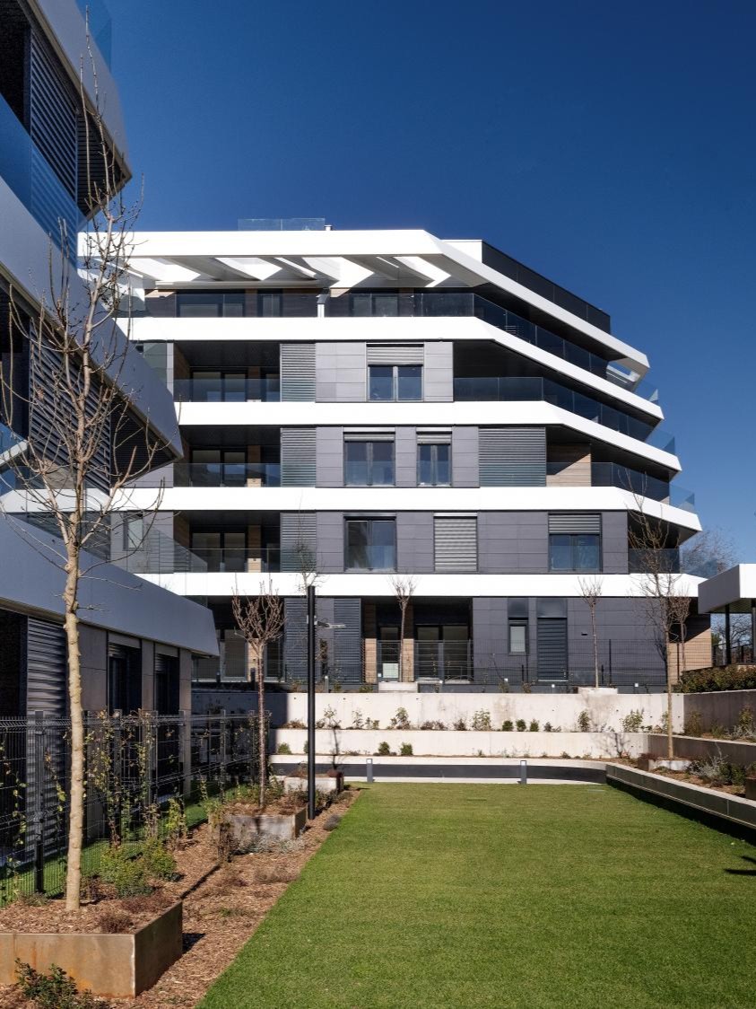 El proyecto se concibe como una transición entre lo urbano y lo natural, integrándose en un entorno en transformación con amplias zonas verdes y espacios abiertos. La disposición aterrazada no solo responde a criterios formales, sino que permite maximizar las vistas, la privacidad y el aprovechamiento climático, aportando valor tanto a nivel arquitectónico como en la experiencia cotidiana de los usuarios.